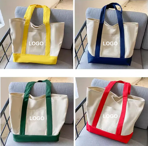 กระเป๋าถือผ้าแคนวาสสีใหญ่สำหรับผู้หญิงกระเป๋าถือช็อปปิ้งสะพายไหล่เดียวทำจากผ้าฝ้ายแคนวาสสำหรับใส่โลโก้ได้ตามต้องการ